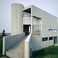 The composite plan/section overlay, the materiality, and the formal manipulation of transparency, extension and volumetric inter-relationships are similar to the Gwathmey Residence. The nautical quality is more evident because of the site, the access, and the sense of leaving the land to be surrounded by water.