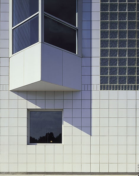 Office Building and Distribution Center Greensboro, NC Located next to a main freeway, this 150,000-square-foot office building offers five floors of flexible office space. Expansion of the original structure has been planned in two phases to the east and west. The building’s entrance is through a tower which contains a five-story atrium and the elevators. Access to each floor is from a balcony overlooking the atrium with views to downtown Greensboro. Continue BackIn contrast to the exposed concrete frame, the entrance tower is clad in white tile, glass block and white porcelain panels. The tower, which counterpoints the frame and object reading of the main structure, defines the entry plaza and the landscape between building and parking area.