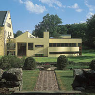 Library and Science Building Middlebury, CT Westover School is a private boarding school for women on a 150-acre rural campus. The campus is dominated by the Main Building, designed in 1907 by Theodate Pope Riddle. Beyond the Main Building, and to the south, lies the Field, a large lawn and playing field used for athletics and graduation ceremonies. The Library and Science Building includes a 40,000-volume academic library with a rare book collection. Continue BackThe building is organized along an elevated arcade that extends and is connected to those of the Main Building and overlooks the Field. The new facilities are reached through entrances off the arcade. Primary spaces—the science laboratories and the library reading room—are sited a half level below the arcade, at the grade of and overlooking a smaller landscaped area to the west. Ancillary spaces—stacks, study carrels, faculty offices, preparation rooms and computer center—are arranged beneath the arcade. These two levels are separated by a two-story skylit gallery, bridged by entrances from the arcade. The composition of building elements with a new façade that incorporates a renovated activity center is punctuated by the observatory housing the school’s 8” telescope.